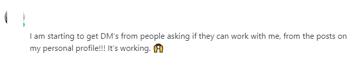 This client wasn't getting enquiries on social media from her posts. We worked together to reposition her online as the expert and then to create content that spoke to her ideal client. Subsequently we structured her offer to create more revenue. Result: She adopted our changes and started getting enquiries from people online wanting to work with her.